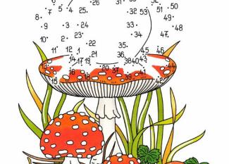 Dibujo de unir puntos de rana y champiñón en color: dibujo para colorear e imprimir