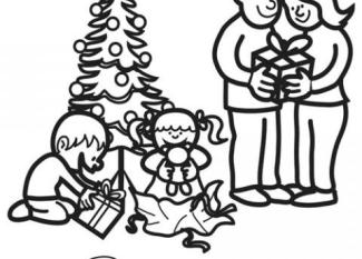 Niños en Navidad. Dibujo para colorear. Pinta con tus hijos estas imágenes infantiles gratis de Navidad. Dibujos para niños de Navidad. Imprime para colorear gratis los dibujos de niños en Navidad.