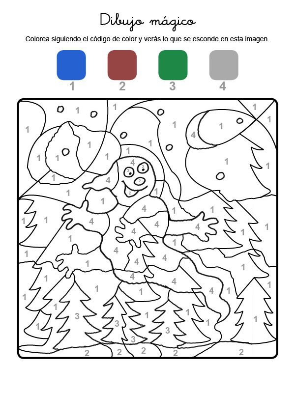Este es un dibujo mágico de Halloween, un fantasmapara imprimir gratis y colorear. Pincha en el botón imprimir para verlo en grande. ¿Has adivinado ya cómo es? Es muy fácil, sólo tienes que colorear con los colores indicados para cada número y descubrirás lo que se esconde detrás de ellos.