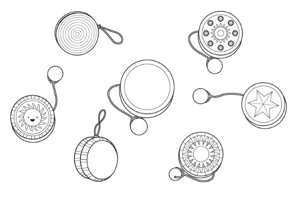 ¿Cuál de estos yoyós te gusta más? Coloréalos todos y diseña tu propio yoyó con los dibujos y colores que más te gusten.