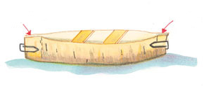 2. Utiliza trozos de corteza más pequeños para hacer los bancos para los indios. Pégalos entre las partes superiores de la canoa.