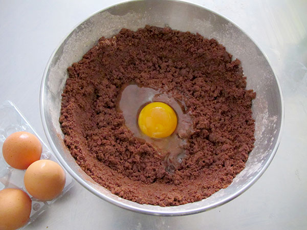 3. Echa la harina, la levadura, el cacao y el azúcar en una fuente.