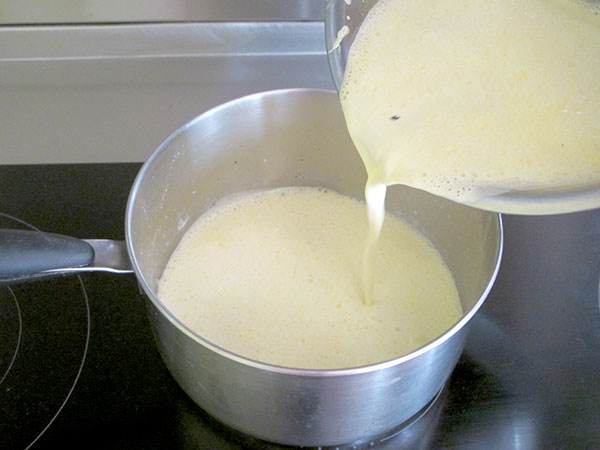 5. Bate hasta que la mezcla se quede blanca y añade la leche.