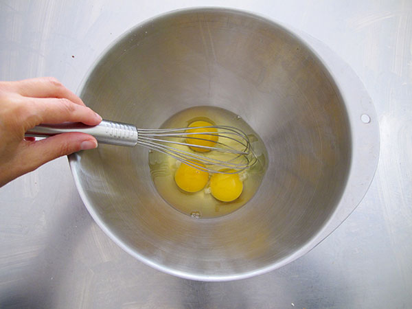 2. Echa los huevos en una fuente y bátelos hasta que queden espumosos.