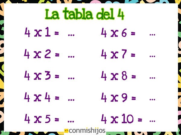 Tabla de multiplicar del 4. Ejercicios para niños (6/9)