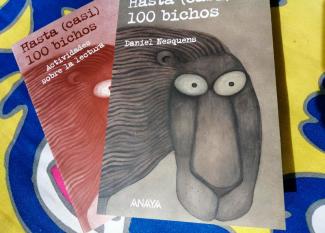 Hasta (casi) 100 bichos es un libro disparatado que recoge divertidas descripciones de comportamiento y fisionomía de “hasta casi 100 bichos”, todos ordenados en orden alfabético; es lo que se conoce como un bestiario.
