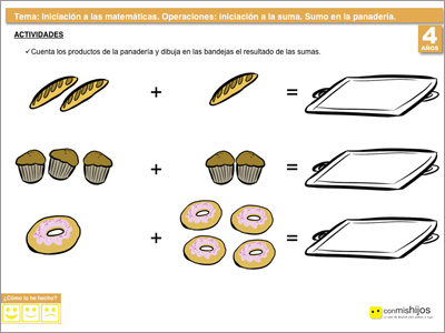 Con este ejercicio de matemáticas, los niños podrán iniciarse en la realización de sumas y comenzarán a familiarizarse con los signos de las operaciones matemáticas.
