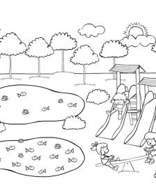 Dibujo para imprimir y colorear de niños jugando en el parque
