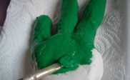 Prepara el yeso siguiendo las instrucciones del fabricante. Ata los 2 dedos más pequeños del guante. Llena el guante con el yeso que has preparado. Cuelga el guante durante 2 horas para que empiece a secarse.