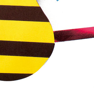 With the help of the pattern, draw in a card the complete mask (for the bee mask the card must be yellow). Cut it out.