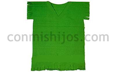 5. Desdobla el vestido, hazle flecos en las mangas y el borde inferior y adórnalo con cintas de colores