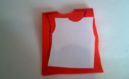 Copia el vestido en un papel y recórtalo. Dobla el fieltro en 2. Coloca el vestido encima (la parte superior del vestido sobre el doblez de la tela) y recórtalo.