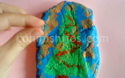 Consejo: también puedes hacer una base a partir de la pasta de sal y pintarla con motivos navideños como árboles de Navidad, campanillas o la cara de Papá Noel.