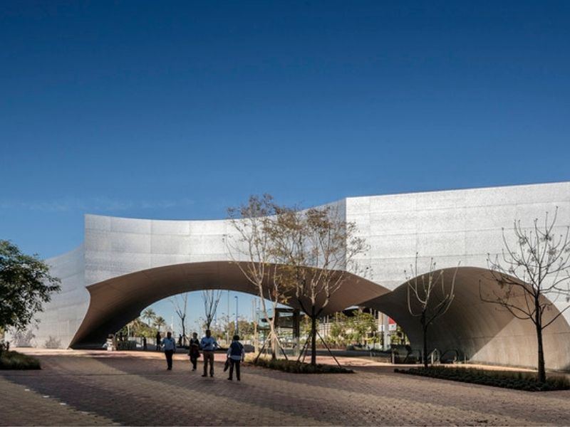 Esta enorme infraestructura cuenta en su interior con múltiples instalaciones como una plaza, un auditorio, distintas salas de conferencias y exposiciones, y hasta una biblioteca.