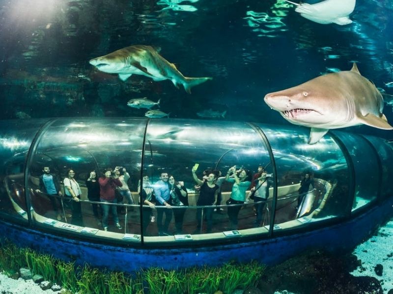 Una de sus atracciones más impresionantes es un túnel de cristal de más de 80 metros que permitirá a los niños conocer el mundo marino desde su profundidad y a contemplar de cerca las impresionantes especies de tiburón y tiburón toro. También posee 7 acuarios troipcales donde los niños podrán aprender sobre los arrecifes de coral más autóctonos del trópico.