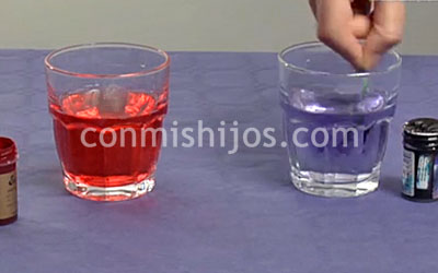 Con este experimento de química podemos mostrar a los niños cómo el vinagre hace que la cáscara del huevo absorba el agua con colorante y quede teñido. recuerda que cuanto más tiempo estén en el agua coloreada, más intenso será el tono conseguido.