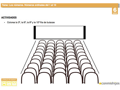 2. Indique al niño que observe la ficha y pregúntele que ve en ella. Póngale diferentes ejemplos en los que tenga que reconocer los números ordinales.